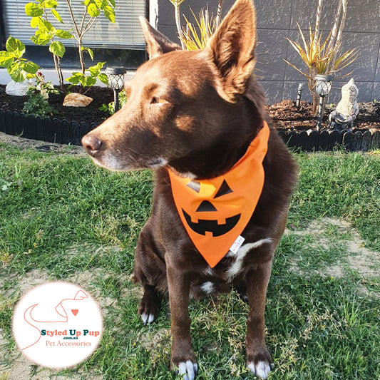 Halloween Dog Bandana (Over-The-Collar) - Scary Pumpkin (Reversible)