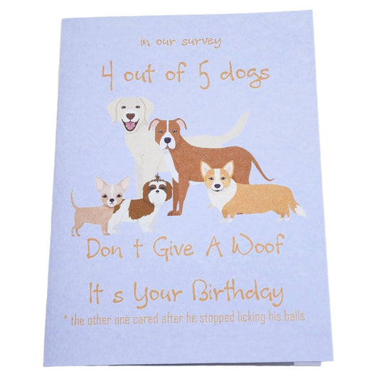 Happy Birthday Barkday card - Dogs don't give a woof its your birthday