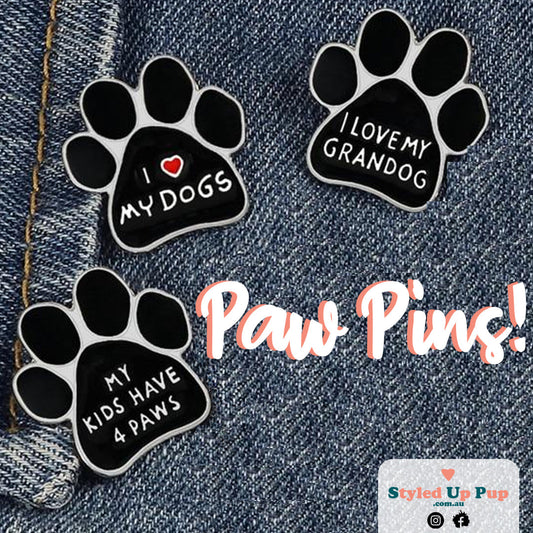 Paw Pins - I Love My Dog | I Love My Grandog | My Kids Have 4 Paws | Metal Pin Badge | Dog Lover Badge