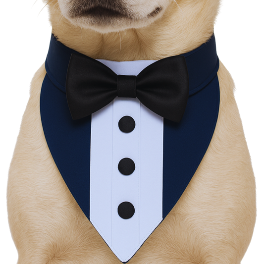 Elegant Tuxedo Dog Bandana - Blue Suit with Black Tie